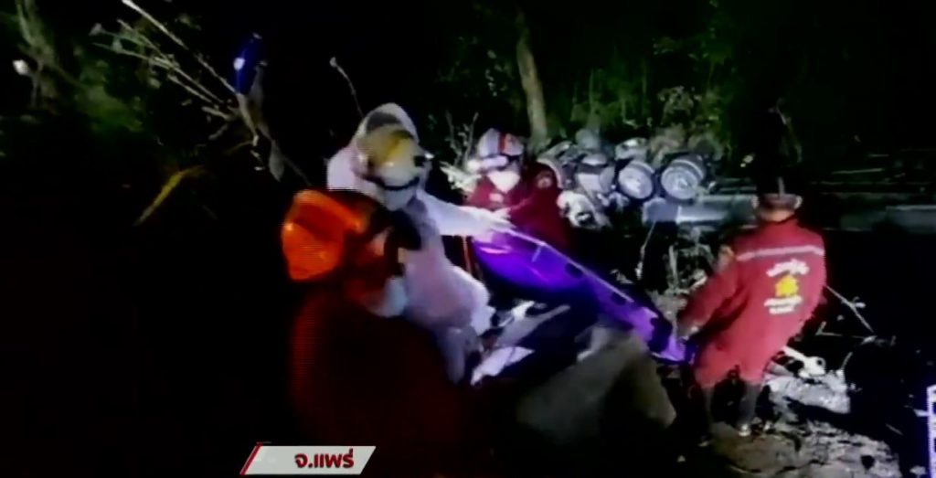 กลางดึกเมื่อคืนนี้ ตำรวจ สภ.สอง จ.แพร่ ได้รับแจ้งเหตุรถบรรทุกน้ำมันเสียหลักพลิกคว่ำบริเวณถนนสายสอง-งาว อ.สอง จ.แพร่ กม.ที่ 33 และมีคนติดอยู่ในรถ จึงประสานสายตรวจ ร่วมกับเจ้าหน้าที่กู้ภัย และรถดับเพลิงจากเทศบาลตำบลห้วยหม้าย เข้าตรวจสอบและนำเครื่องตัดถ่างลงพื้นที่ให้ความช่วยเหลือ ที่เกิดเหตุเป็นถนนช่วงขึ้นเขา ทางโค้ง พบรถบรรทุกน้ำมัน 22 ล้อ ทะเบียนชลบุรี พลิกคว่ำอยู่ข้างทาง ลึกลงไปจากถนนประมาณ 10 เมตร มีกลิ่นน้ำมันฟุ้งกระจาย และมีคนติดอยู่ในรถ 1 คน เจ้าหน้าที่นำเครื่องตัดถ่างเข้าช่วยเหลือ นำร่างผู้ได้รับบาดเจ็บส่ง รพ.สอง โดยต้องใช้เวลาในการตัดถ่างนานถึง 1 ชั่วโมง ทราบชื่อคนขับคือ นายสันติพงษ์ สมปอง เป็นพนักงานขับรถของบริษัทเอกชน ในคลังน้ำมันระยอง ซึ่งได้รับบาดเจ็บสาหัส