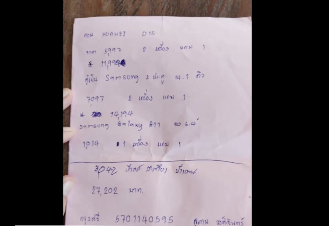 นางจันที สีทองคำ อายุ 53 ปี อยู่ในตำบลป่าเลา จังหวัดเพชรบูรณ์ เล่าว่ามีชายคนหนึ่งอ้างเป็นเจ้าหน้าที่ไปรษณีย์ทักมาทางเฟซบุ๊กสามี แล้วแอดมาเป็นเพื่อนทางไลน์เสนอขายเครื่องใช้ไฟฟ้าราคาที่ถูกเป็นสินค้าของไปรษณีย์ หากซื้อจะได้สะสมแต้มแลกซื้อสินค้าร่วมรายการอื่นอีกด้วย พร้อมส่งแคตตาล็อกสินค้าเครื่องใช้ไฟฟ้ามาให้เลือก มีโปรโมชั่นหากซื้อตู้เย็น 2 หลัง จะได้แถมอีก 1 หลัง ในราคา 14,194 บาท โน้ตบุ๊กซื้อ 2 แถม 1 เช่นกันในราคา 11,994 บาท รวมเป็นเงิน 27,202 บาท จึงได้โอนเงินไปให้ทั้งหมด เพราะราคาถูกและตู้เย็นที่บ้านเสียมาหลายวันแล้ว และซื้อโน้ตบุ๊กให้หลานไว้เรียนออนไลน์