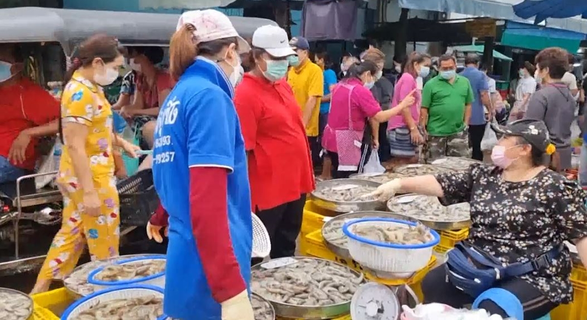 บรรยากาศการค้าขายที่ตลาดสดมหาชัย ภายหลังจากสถานการณ์ผู้ติดเชื้อโควิด-19 ใน จ.สมุทรสาคร ตัวเลขรายวันลดลงต่อเนื่อง และต่ำกว่าวันละ 1,000 ราย ติดต่อกันมาถึง 11 วันแล้ว สร้างความเชื่อมั่นให้แก่ผู้บริโภค กระตุ้นเศรษฐกิจของ จ.สมุทรสาคร ฟื้นกลับมา ทำให้ตลาดสดมหาชัยมีลูกค้ากลับเข้ามาเดินจับจ่ายซื้ออาหารทะเลสด อาหารทะเลแห้ง ผักและผลไม้ มากขึ้นในช่วงวันหยุด