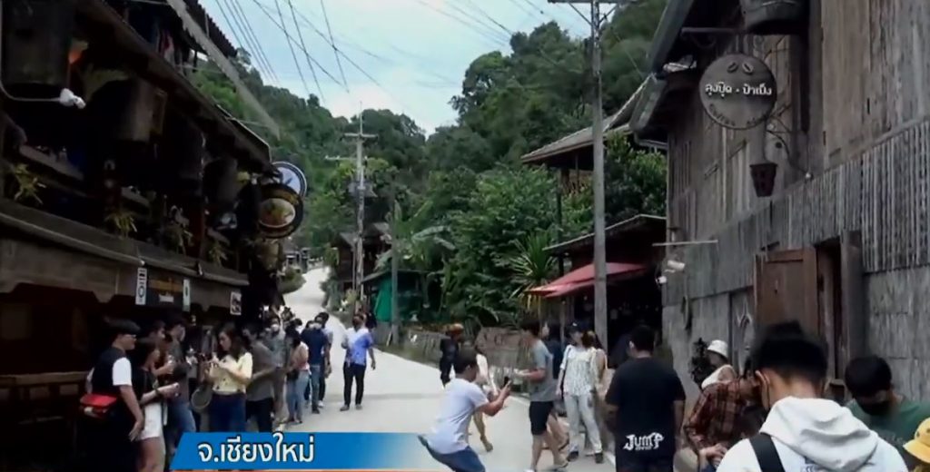 ส่วนที่เชียงใหม่ พื้นที่ท่องเที่ยวยอดฮิตในช่วงที่ผ่านมา อย่างหมู่บ้านแม่กำปอง ในช่วงสุดสัปดาห์ที่ผ่านมา เริ่มมีนักท่องเที่ยวจำนวนมาก กลับมาเยี่ยมเยียนอีกครั้ง ร้านอาหาร เครื่องดื่ม เนืองแน่นไปด้วยนักท่องเที่ยวไปนั่งกินดื่มกันอย่างมีความสุข กินไปก็ชมวิวบรรยากาศของหมู่บ้านไป ท่ามกลางอากาศเย็นสบาย กินเสร็จก็ไปจับกลุ่มถ่ายรูปกลางถนนของหมู่บ้าน ถือเป็นสัญลักษณ์ที่ใครมาก็ต้องถ่ายรูปเป็นที่ระลึก