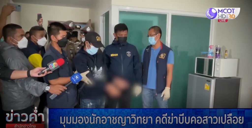 ตำรวจคุมตัวนายเอกพจน์ อายุ 34 ปี มือฆ่าบีบคอสาววัย 27 ปี เปลือยกายบนเตียงในอพาร์ตเมนต์หรูย่านสมุทรปราการ ไปทำแผนประกอบคำรับสารภาพ ผู้ต้องหายอมรับว่ารู้จักเหยื่อผ่านทวิตเตอร์ ก่อนจะตกลงปลงใจนัดพบกัน โดยจ่ายเงินให้เหยื่อ 1,300 บาท มีเพศสัมพันธ์กัน ก่อนจะเริ่มมีปากเสียง ด้วยความโมโหจึงใช้มือบีบคอเหยื่อจนเสียชีวิต จากนั้นคว้าสร้อยข้อมือหนัก 2 บาท และมือถืออีก 3 เครื่อง ของเหยื่อไป ในคืนเดียวกันนั้น ก่อเหตุลักษณะเดียวกันกับเหยื่ออีกคนในพื้นที่บางนา บีบคอเหยื่อเช่นกัน แต่เหยื่อมีสติ ร้องขอชีวิตไว้ ก่อนจะรีดเงิน 6,000 บาท เพื่อแลกกับอิสรภาพ