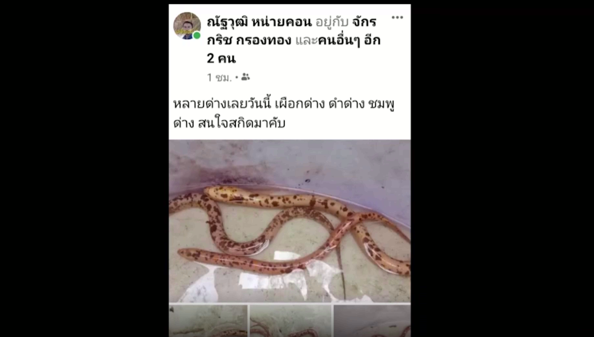จากกรณีผู้ใช้เฟซบุ๊กโพสต์รูปภาพปลาไหลด่าง 2 ตัว ที่ใส่ไว้ในกะละมัง พร้อมกับข้อความว่าสนใจสะกิดมาได้ ทำให้สร้างความฮือฮาในโลกโซเซียล