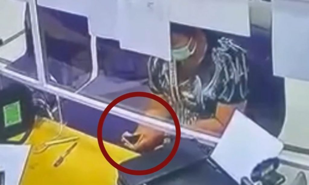 คลิปวงจรปิดเผยให้เห็นหญิงใส่เสื้อยืดคอกลมลายขาวดำ ซึ่งกำลังนั่งแจ้งความกับเจ้าหน้าที่ตำรวจ แล้วหันไปเห็นโทรศัพท์มือถือที่วางอยู่โต๊ะด้านข้าง เธอรอจังหวะเจ้าหน้าที่ตำรวจเผลอ ก่อนเอื้อมมือไปหยิบโทรศัพท์ มองซ้ายมองขวา นั่งตีเนียนเหมือนไม่มีอะไรเกิดขึ้น หลังจากนั้นหยิบมือถือใส่กระเป๋ากางเกงรีบเดินหลบออกไป ซึ่งกล้องวงจรปิดภายในห้องแจ้งความ สภ.ปากเกร็ด จ.นนทบุรี บันทึกไว้ได้ และเห็นหน้าชัดเจน