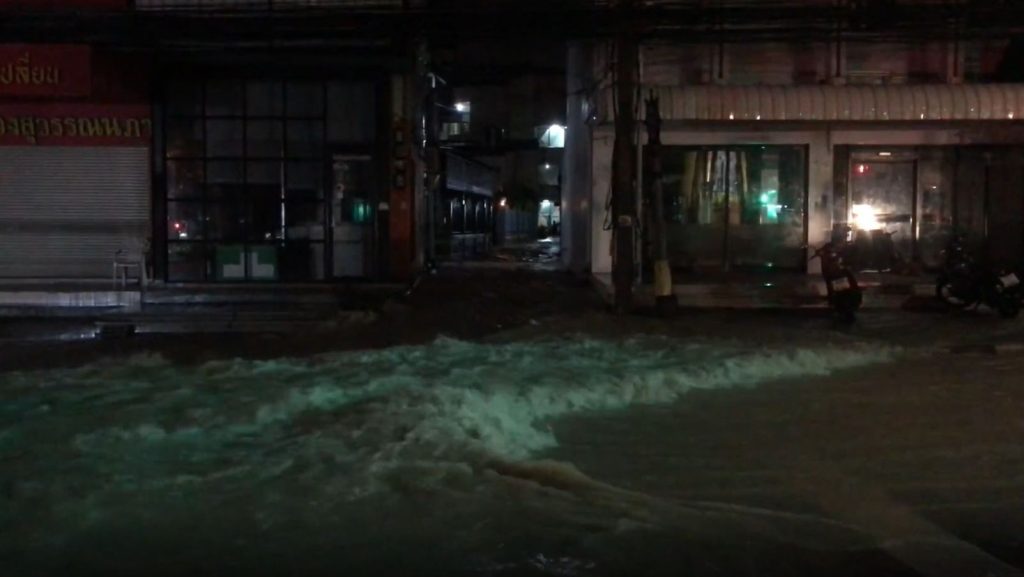 ชลบุรี 8 ก.ย.-พัทยา ฝนตกต่อเนื่องตลอดทั้งคืน เช้านี้น้ำเอ่อท่วมขังในหลายจุด สูงประมาณ 30-70 ซม. บางเส้นทางไม่สามารถสัญจรผ่าน คาดจะยังคงมีฝนตกลงมาอีก เตือนขนของขึ้นที่สูง