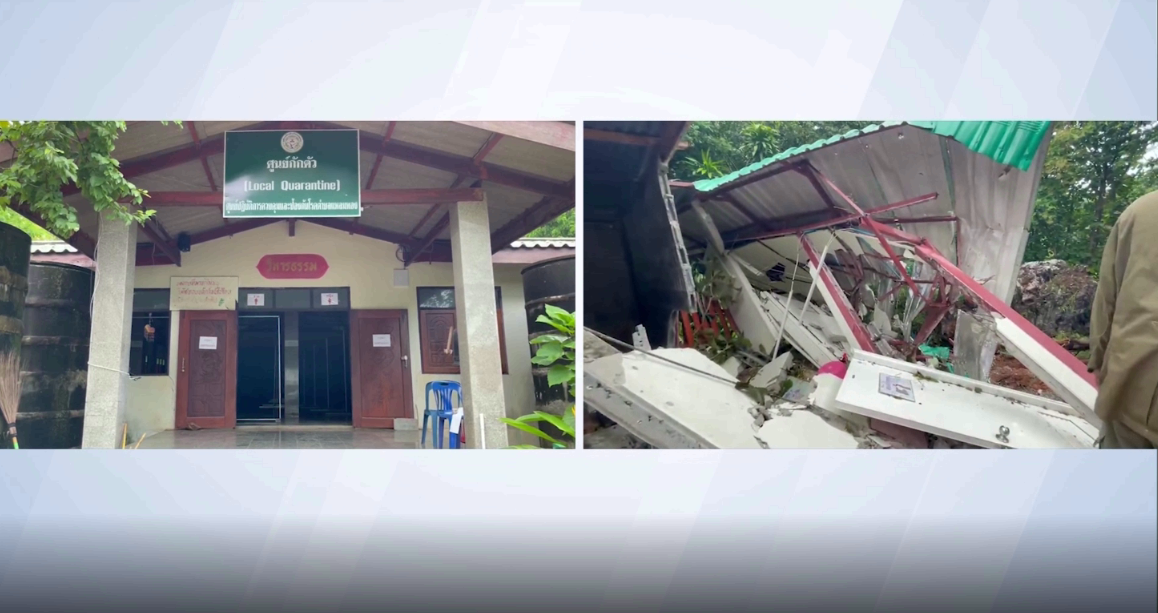 นายสุระ เต็งผิว รองนายกองค์การบริหารส่วนตำบลแหลมทอง อำเภอภักดีชุมพล จังหวัดชัยภูมิ เผยว่าสาเหตุมาจากฝนที่ตกลงมาอย่างหนักและต่อเนื่องหลายวัน ทำให้มีก้อนหินขนาดใหญ่และดินสไลด์ลงมาจากเทือกเขาพระยาฝ่อ ลงมาทับศาลาการเปรียญ ซึ่งใช้เป็นสถานที่ตั้งศูนย์พักคอยของผู้ป่วยโควิด-19 ในวัดเขาถ้ำพระ พังเสียหาย พระเณรในวัดต่างวิ่งหนีตายออกจากกุฏิ โชคดีที่ไม่มีผู้ป่วยอยู่ในศูนย์ เนื่องจากก่อนหน้าเกิดเหตุไม่กี่ชั่วโมง เจ้าหน้าที่กู้ภัยเพิ่งนำรถมารับตัวผู้ป่วยไปตรวจหาเชื้อที่โรงพยาบาลภักดีชุมพล ทั้งหมดจึงรอดมาได้หวุดหวิด และไม่มีใครได้รับอันตราย มีแต่ทรัพย์สินพังเสียหายอย่างหนัก ล่าสุดเจ้าหน้าที่ อบต.แหลมทอง ได้ย้ายผู้ป่วยทั้งหมดไปพักที่ศูนย์พักคอยแห่งใหม่ ห่างจากจุดเกิดเหตุไปประมาณ 10 กว่ากิโลเมตรเพื่อความปลอดภัย.-สำนักข่าวไทย
