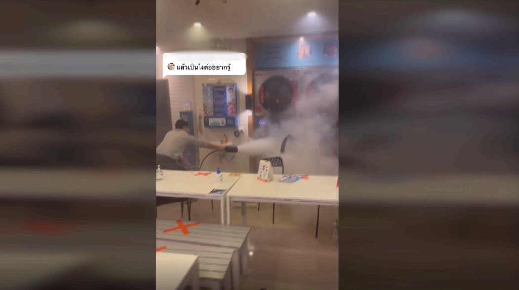 ขณะนั้นมีหญิงและเด็กอยู่ใกล้เครื่องซักผ้า หญิงได้รีบดึงแขนเด็กออกจากด้านหน้าเครื่องทันที ไม่นานได้มีชายนำถังดับเพลิงมารีบฉีดสารเคมีดับไฟ หลังจากไฟดับลง ตรวจสอบพบว่าเป็นเครื่องอบผ้าขนาด 15 กิโล สาเหตุน่าจะเกิดกระทำงานผิดปกติของเครื่อง หรือผู้ที่นำมาซักอบแห้ง อาจจะลืมไฟแช็กไว้ในกระเป๋ากางเกงที่นำมาซัก เมื่อเครื่องอยู่ในโหมดอบปั่นแห้ง ทำให้เกิดความร้อนจนไฟแช็กระเบิดและเกิดไฟไหม้ขึ้น.-สำนักข่าวไทย
