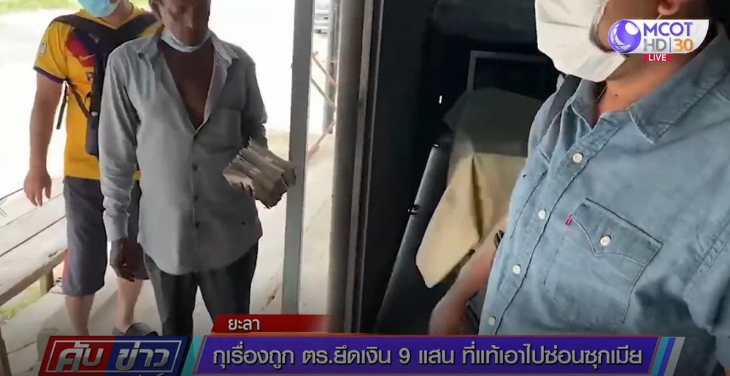 ยะลา 10 ก.ย. – หนุ่มกุเรื่องถูกเจ้าหน้าที่แต่งกายคล้ายตำรวจยึดเงิน 900,000 บาท สอบปากคำสุดท้ายยอมรับเอาเงินไปซ่อน สารภาพอยากเก็บไว้เอง เพราะภรรยาให้นำไปฝากไว้กับญาติ