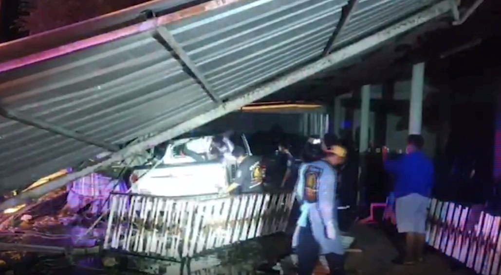 ชลบุรี 12 ก.ย.- เจ้าหน้าที่ตำรวจ สภ.หนองปรือ จ.ชลบุรี รับแจ้งอุบัติเหตุรถยนต์เสียหลักชนบ้านเรือนประชาชน หลังคาถล่ม เสาไฟหักโค่นขาดสองท่อน และท่อประปาแตก