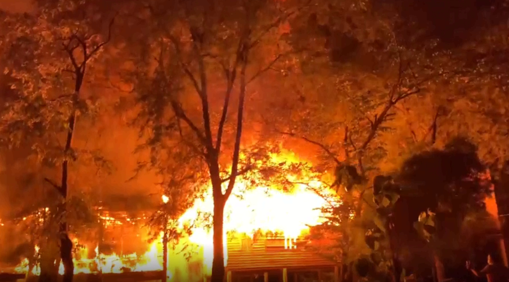 ภาพไฟโหมลุกไหม้จากกุฏิหนึ่งลามไปอีกกุฏิหนึ่งอย่างรวดเร็ว โดยมีพระลูกวัดที่หนีรอดออกมาจากเพลิงได้ ต่างมายืนดูเหตุการณ์ด้วยความตื่นตระหนก ส่วนตำรวจ และเจ้าหน้าที่ดับเพลิงเร่งสอบถามสถานการณ์ ก่อนระดมรถน้ำเร่งสกัดเพลิง เพราะต้นเพลิงเป็นกุฏิหลังใหญ่ครึ่งตึกครึ่งไม้ แต่ไฟลามไหม้รวดเร็ว และโหมกระหน่ำอย่างรุนแรง เนื่องจากมีลมพัดกระโชกมาเป็นระยะ ทำให้ไฟลามติดไปยังกุฏิข้างเคียงอีก 2 หลัง ใช้เวลาเกือบชั่วโมง เพลิงจึงสงบ แต่กุฏิก็ถูกเพลิงเผาวอดไป 3 หลัง 10 ห้อง