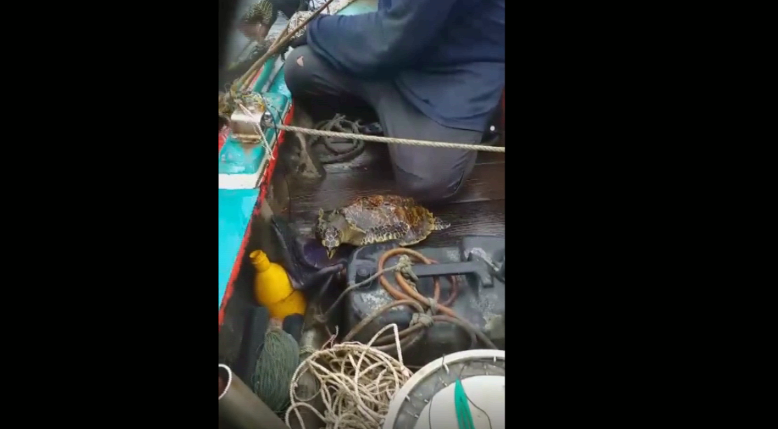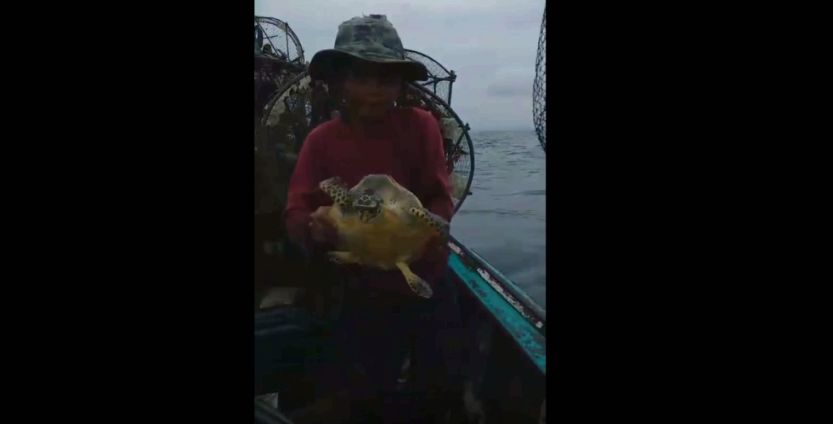 กระบี่ 13 ก.ย.- ชาวโซเชียลพากันชื่นชม 2 พ่อลูกชาวประมงพื้นบ้านกำลังช่วยกันปลดเศษอวนที่รัดตามตัวเต่าทะเล บนเรือประมงขนาดเล็ก ก่อนที่ลูกชายจะจับเต่าตัวดังกล่าวปล่อยลงสู่ทะเล จนเต่าว่ายน้ำหายไปอย่างรวดเร็ว