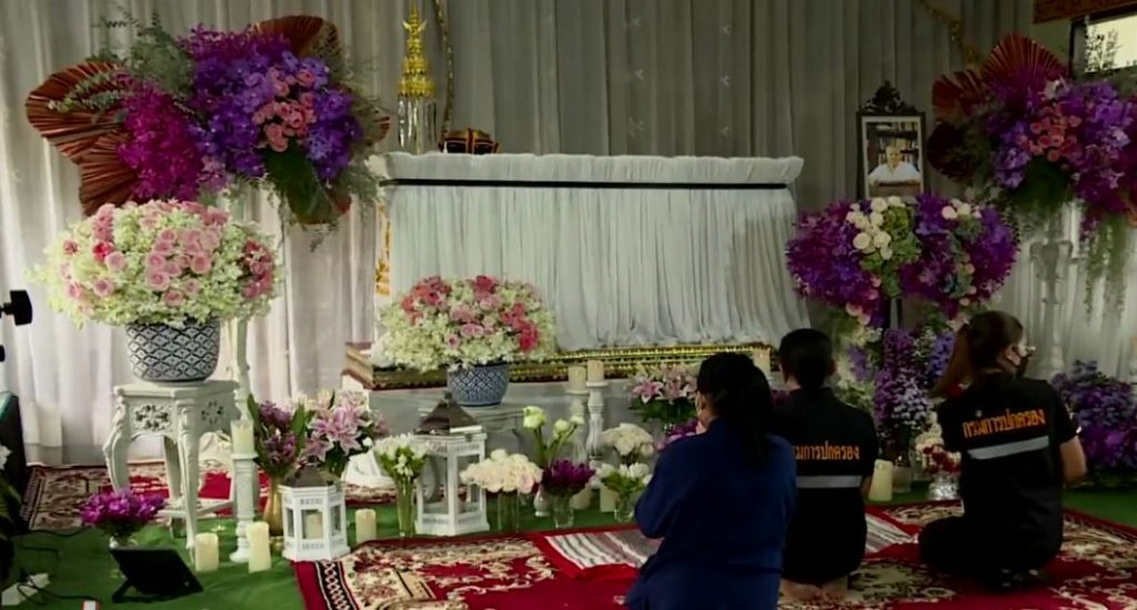 ส่วนช่วงเช้าวันพรุ่งนี้ (16 ก.ย.) เวลาประมาณ 07.00 น. จะเคลื่อนศพด้วยเครื่องบินไปที่กรุงเทพ ณ วัดมกุฏกษัตริยารามฯ เพื่อประกอบพิธีทางศาสนาบำเพ็ญกุศล เป็นเวลา 7 วัน โดยได้รับพระราชทานเพลิงศพในวันที่ 23 กันยายนนี้