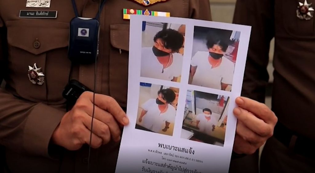 จากการสอบปากคำพยานแวดล้อมประกอบกับภาพวงจรปิดที่มีความสัมพันธ์กัน ทำให้ทราบรูปพรรณสันฐานของผู้ต้องสงสัย เป็นชายผิวดำแดง อายุประมาณ 40 ปี และพูดสำเนียงอีสาน นำมาซึ่งการออกภาพสเกตซ์ผู้ต้องสงสัยแจกจ่ายให้ประชาชนช่วยแจ้งเบาะแส กระทั่งพบวงจรปิดอีกจุด บริเวณหน้าร้านริมถนน ค.2 เขตเทศบาลนครระยอง เวลา 5 ทุ่มเศษ คืนวันเกิดเหตุ ชายต้องสงสัยขับรถจักรยานยนต์มาหลบฝน และนั่งสูบบุหรี่ที่ม้าหินอ่อน ก่อนจะพยายามเดินไปถอดป้ายทะเบียนรถ แต่ถอดไม่ออก จากนั้นชายคนดังกล่าวได้เปลี่ยนเสื้อผ้าและเก็บเสื้อผ้าไว้ใต้เบาะรถจักรยานยนต์ ก่อนจะขับออกไป