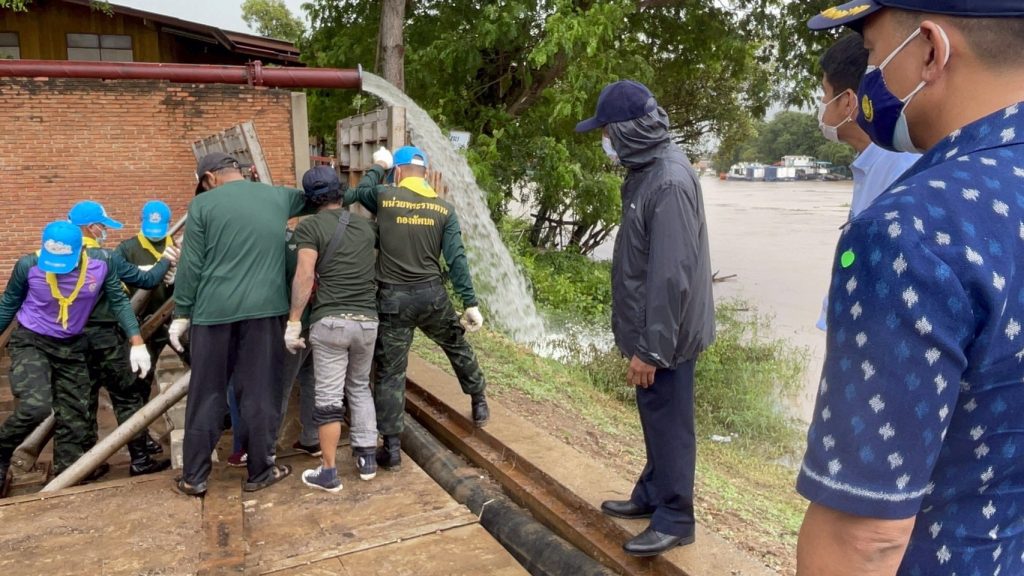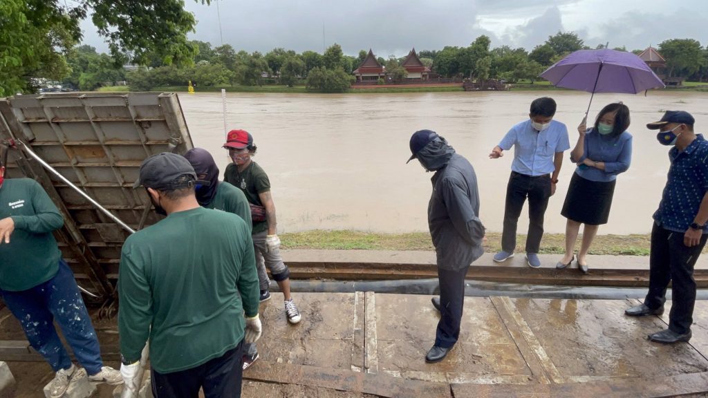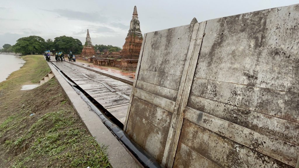 นายภานุ แย้มศรี ผู้ว่าฯ พระนครศรีอยุธยา นายภัทรพงษ์ เก่าเงิน ผอ.อุทยานประวัติศาสตร์พระนครศรีอยุธยา พร้อมด้วยป้องกันจังหวัดฯ และนายอำเภอพระนครศรีอยุธยา นำกำลังคนงานของอุทยานประวัตศาสตร์พระนครศรีอยุธยา และกำลังพลทหารจาก มทบ.18 จำนวน 20 นาย ช่วยกันตั้งแนวบังเกอร์ป้องกันน้ำบริเวณริมแม่น้ำเจ้าพระยา หน้าโบราณสถานไชยวัฒนาราม ต.บ้านป้อม อ.พระนครศรีอยุธยา