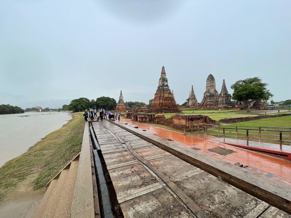 แม้ว่าระดับน้ำยังอยู่ต่ำกว่าตลิ่ง 1.20 เมตร แต่จากการที่ระดับน้ำในแม่น้ำเจ้าพระยาสูงขึ้นต่อเนื่องในช่วง 2-3 วันนี้ ทำให้ทางจังหวัดและอุทยานประวัติศาสตร์พระนครศรีอยุธยา ไม่ไว้วางใจ จึงเร่งตั้งแนวบังเกอร์ป้องกันน้ำท่วมโบราณสถาน โดยแนวดังกล่าวมีความยาว 409 เมตร และสูงประมาณ 2 เมตร