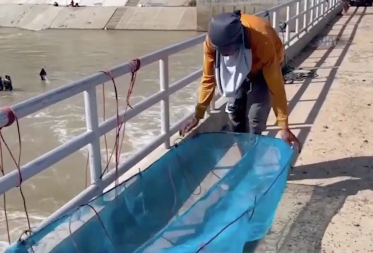 นายทองดี บุญลี บ้านละลูน ม.2 ต.หนองเต็ง อ.กระสัง จ.บุรีรัมย์ บอกว่าตนมาตั้งแต่เช้า วันนี้ได้ประมาณ 10 กว่ากิโลกรัม ปกติทำงานไม่ได้มาทุกวัน วันไหนหยุดหรือว่างจากงานก็จะพาลูกสาวมาตั้งแต่เช้าจนถึงเย็นก็กลับ ปลาที่ได้ก็จะนำไปทำกับข้าวกินเองบ้าง ขายบ้าง พอได้เป็นค่าใช้จ่ายในครอบครัวในช่วงโควิด-19 ระบาด หากเหลือเยอะก็แบ่งให้เพื่อนบ้านกินบ้าง ปลาที่ได้จากการดักตาข่ายแบบนี้ ส่วนมากจะเป็นปลาขาวกับตะเพียน ขายในราคา กก.ละ 50 บาท วันหนึ่งได้ประมาณห้าร้อยถึงพันกว่าบาท