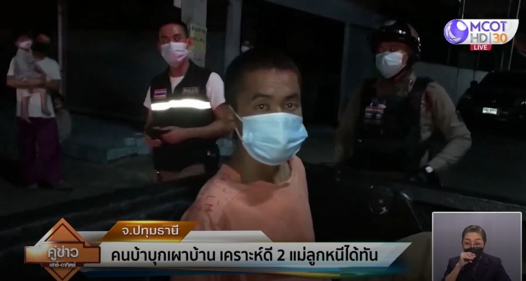 ปทุมธานี 18 ก.ย. – ชายบุกเผาบ้าน สาวใหญ่กับลูกสาวหนีออกมาได้ทัน ส่วนผู้ก่อเหตุไม่ได้หนีไปไหน นอนยิ้มดูผลงานตัวเองอยู่ใกล้ๆ ที่เกิดเหตุ