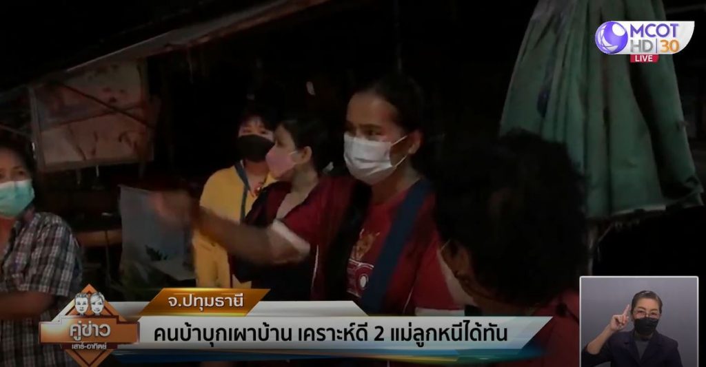 ด้าน น.ส.ดารินทร์ เจ้าของบ้านเกิดเหตุ เล่าว่า กำลังนอนอยู่ชั้น 2 กับลูกสาว ได้ยินเหมือนเสียงระเบิด จากนั้นไฟก็ดับ จึงลุกไปเปิดหน้าต่างเพื่อให้ลมเข้า และได้ยินเสียงเพื่อนบ้านตะโกนบอกไฟไหม้บ้าน จึงวิ่งไปปลุกลูกสาวและหยิบกุญแจบ้านเปิดประตูหน้าบ้านตรงที่ไฟไหม้ แต่เปิดประตูไม่ออก จึงวิ่งไปออกประตูหลังแทน ระหว่างที่วิ่งลงมาข้างล่างนั้นควันไฟได้เขามาในบ้านจำนวนมาก คิดว่าตนเองไม่รอดแน่ๆ แล้ว แต่โชคดีที่ตั้งสติหากุญแจหลังบ้านเจอ ทำให้รอดมาได้.-สำนักข่าวไทย