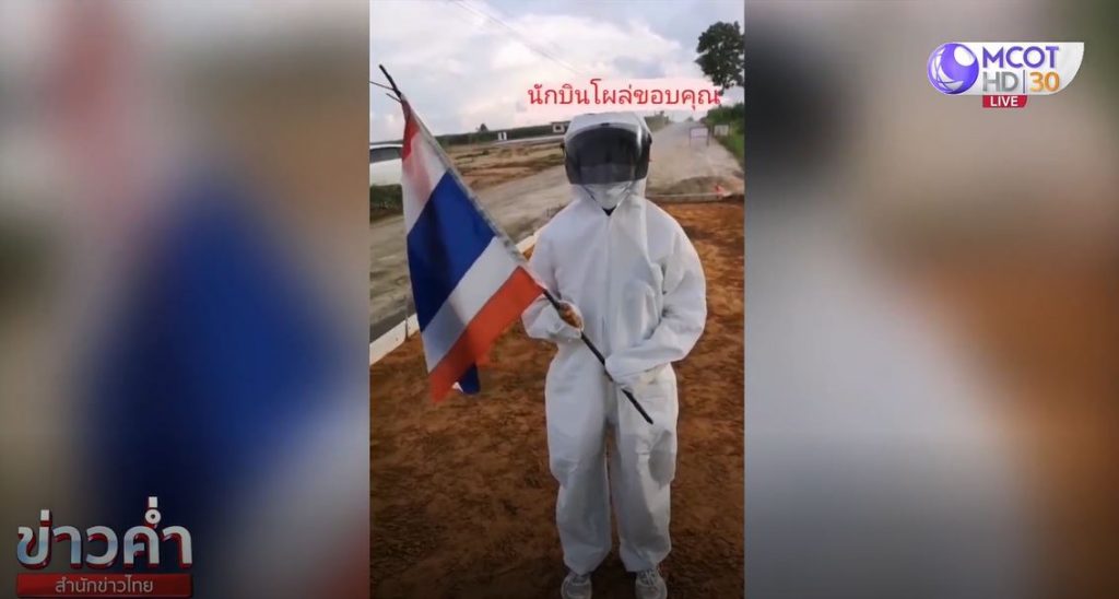 ขอนแก่น 18 ก.ย. – หญิงสาวชาว อ.กระนวน จ.ขอนแก่น ที่สวมชุด PPE แปลงร่างเป็นมนุษอวกาศ เดินสำรวจถนนที่เป็นหลุมขรุขระ ขอบคุณเจ้าหน้าที่และสื่อที่ทำให้หลายฝ่ายลงพื้นที่ซ่อมแซมถนน