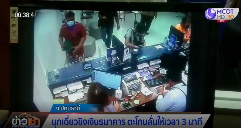 จากการสอบถามนางสาวอริสา เจ้าหน้าที่ธนาคาร ให้การว่า เวลาประมาณ 15.00 น. ขณะตนเองให้บริการลูกค้าอยู่ที่เคาน์เตอร์ โดยภายในมีประชาชนมาใช้บริการจำนวนมาก จากนั้นเมื่อถึงคิวที่ 95 คนร้ายเดินเข้ามาที่เคาน์เตอร์ ก่อนยื่นถุงผ้าให้บอกว่า “มาปล้น และให้เวลา 3 นาที” ตนเองก็ตกใจแต่ไม่ได้ส่งเงินให้ และบอกไปว่าสักครู่ จากนั้นจึงกดกริ่งเรียกหัวหน้าและหลบไปหลังเคาน์เตอร์