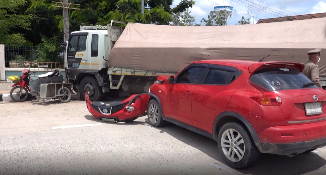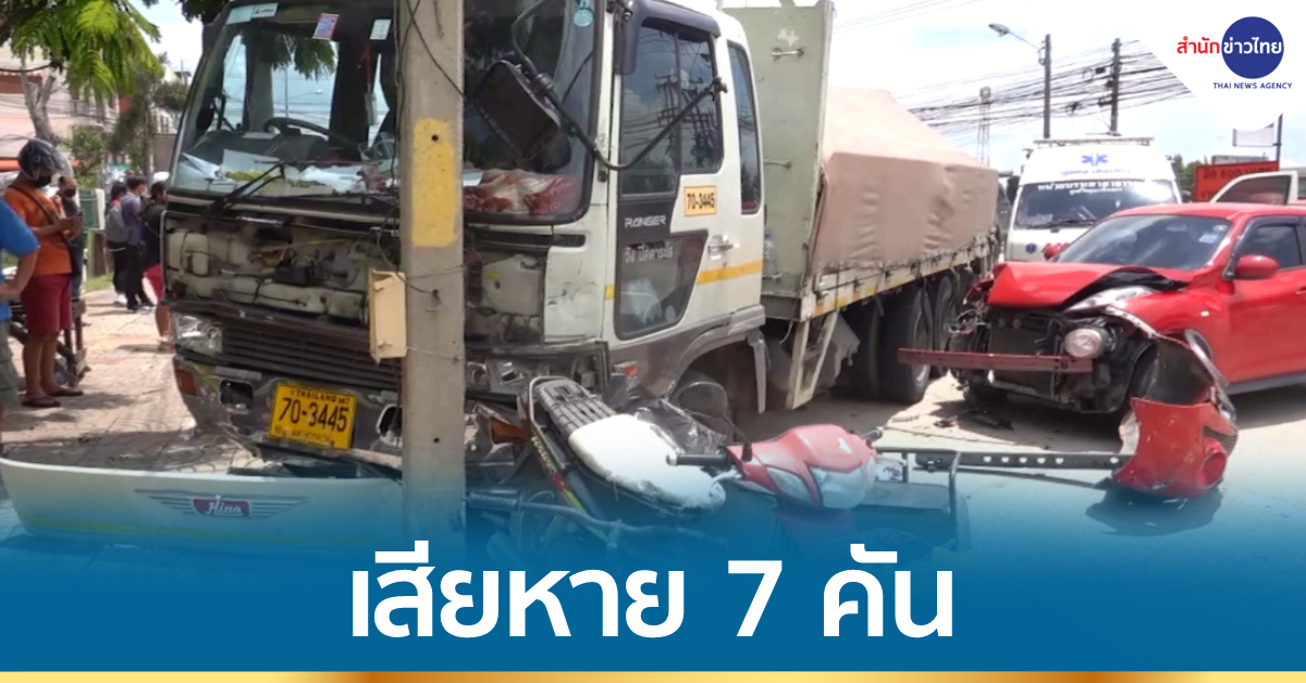 ก่อนที่รถบรรทุกสิบล้อจะข้ามเลนไปชนรถเก๋ง ของนายรพีพัฒน์ ยวงสุวรรณ ที่ขับสวนแล้วพุ่งชนรถจักรยานยนต์ ไม่ติดแผ่นป้ายทะเบียน ลักษณะพ่วงข้าง และรถจักรยานที่จอดข้างทาง ก่อนจะขึ้นทางเท้าชนเสาไฟฟ้า รวมแล้วเกิดอุบัติเหตุ 7 คัน โดยรถผู้เสียหายที่โดนผลกระทบครั้งนี้ได้เล่าถึงให้เหตุการณ์ว่ารถทางตรงเบรกไม่อยู่ และสถานการณ์ค่อนข้างเร็ว.-สำนักข่าวไทย