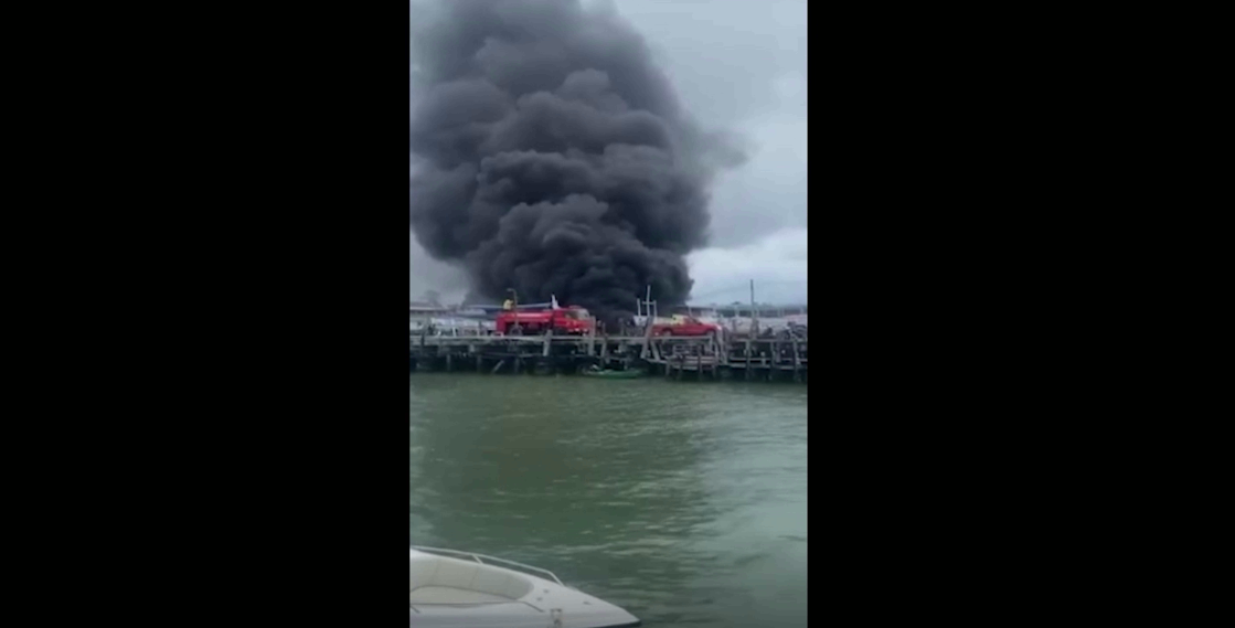 ระยอง 22 ก.ย.- ภาพเหตุระทึกเรือสปีดโบ๊ตลำหนึ่งเกิดระเบิดสนั่นบริเวณท่าเรือโชคกฤษดาข้ามฝากเกาะเสม็ดในตลาดบ้านเพ อำเภอเมือง จ.ระยอง เมื่อช่วงสายวันนี้ (22 ก.ย.) เปลวไฟลุกไหม้พร้อมกลุ่มควันดำลอยฟุ้งบนท้องฟ้า ท่ามกลางเสียงของผู้คนที่พบเห็นและแตกตื่น