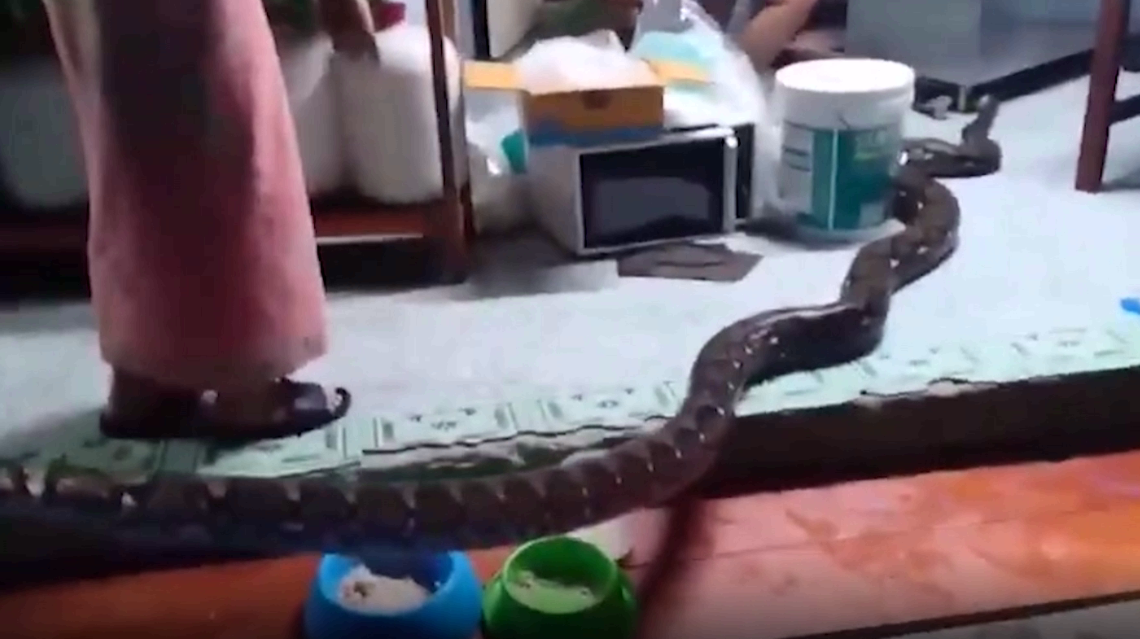 จากการสอบถามดาบตำรวจ ประเสริฐ เจ้าของบ้านบอกว่า ขณะที่ตนและคนในบ้านกำลังจะเข้านอน ได้ยินเสียงลูกสุนัขที่เลี้ยงไว้ร้องจึงเข้าไปดู พบมีงูเหลือมขนาดใหญ่กำลังรัดลูกสุนัขหมายจะขย้ำกลืนกิน ตนจึงคว้าท่อนเหล็กตีงู เพื่อให้คลายลูกสุนัขออก พร้อมกับให้คนในบ้านโทรศัพท์ไปแจ้งที่ อบต.โคกขาม ให้ช่วยมาจับงูได้สำเร็จ ส่วนเจ้าลูกสุนัขก็ได้รับบาดเจ็บนำมาปฐมพยาบาลจนปลอดภัยดีแล้ว.-สำนักข่าวไทย