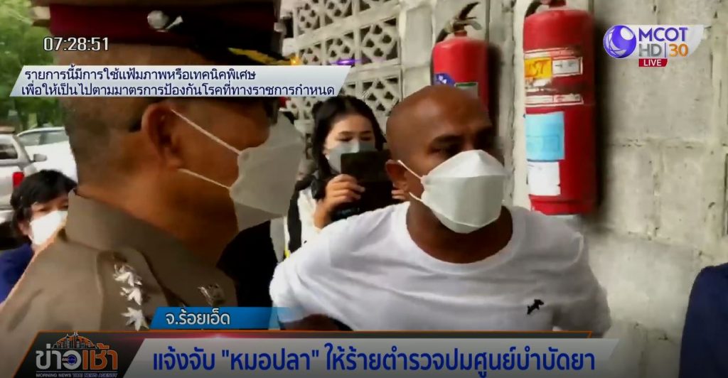 จากกรณี “หมอปลา” นำผู้เสียหายมายังกระทรวงสาธารณสุข เพื่อร้องเรียนให้ตรวจสอบศูนย์ฟื้นฟูสมรรถภาพผู้ติดยาเสพติดที่วัดแห่งหนึ่งใน อ.ด่านมะขามเตี้ย จ.กาญจนบุรี หลังพบว่าไม่เป็นไปตามกฎระเบียบของสำนักงานสาธารณสุขจังหวัด และเรียกรับเงินการเข้าบำบัด โดยอ้างว่าตำรวจใน จ.ร้อยเอ็ด มีส่วนได้เสียในการนำผู้เสพยาเสพติดไปบำบัด ล่าสุดผู้การร้อยเอ็ดตั้งโต๊ะแถลงการันตีตำรวจไม่มีเอี่ยวแสวงหาประโยชน์จากผู้บำบัดยาเสพติดในวัดดังกล่าว