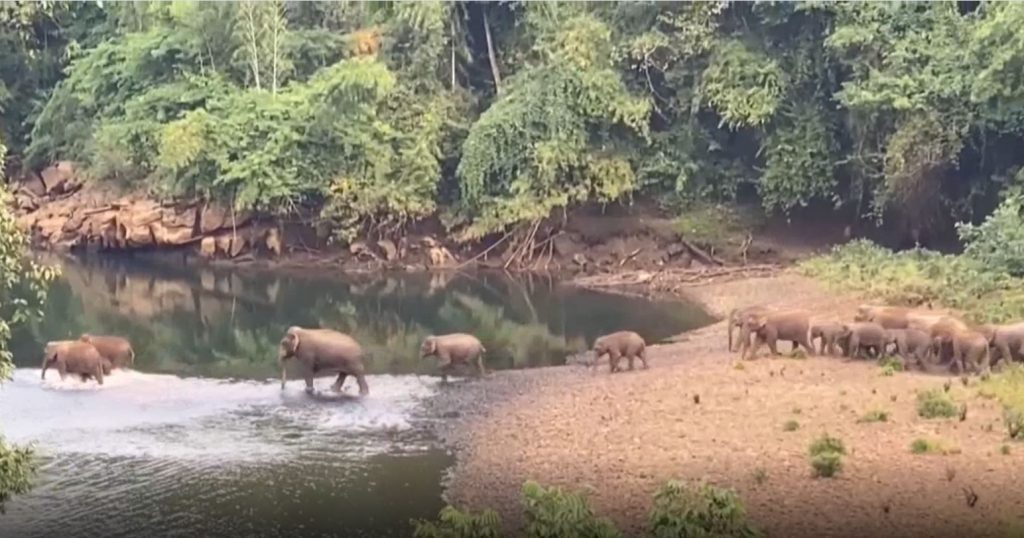 เจ้าหน้าที่อุทยานแห่งชาติทองผาภูมิ พร้อมชาวบ้านและจิตอาสา เข้าไปช่วยผลักดันช้างป่า 6 ตัว ที่เข้ามากินพืชผลทางการเกษตรของชาวบ้านใน ต.ท่าขนุน อ.ทองผาภูมิ จ.กาญจนบุรี ซึ่งเป็นพื้นที่ติดกับอุทยานแห่งชาติทองผาภูมิ ส่วนใหญ่ปลูกมันสำปะหลัง และยางพารา เจ้าหน้าที่ใช้วิธีจุดประทัดยักษ์ พร้อมตะโกนเสียงดังเพื่อให้ช้างออกไปจากพื้นที่เกษตร และกลับเข้าป่า