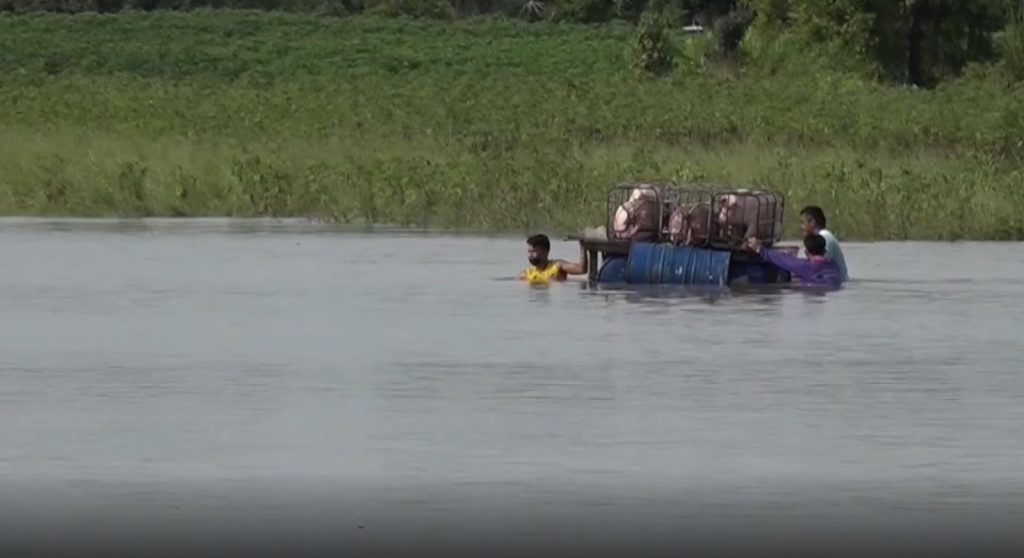 ขนย้ายหมูท้องแก่หนีน้ำท่วม จ.นครราชสีมา