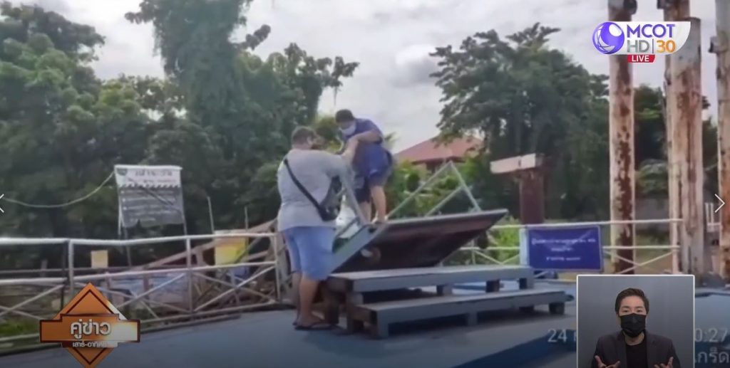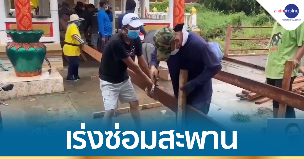 นนทบุรี 26 ก.ย. – เจ้าหน้าที่เร่งซ่อมแซมโป๊ะเทียบเรือข้ามฟากวัดสนามเหนือ จ.นนทบุรี หลังเสียหายจากน้ำขึ้นสูงและดันสะพานจนพัง