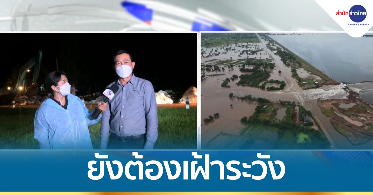 สถานการณ์บริเวณท้ายอ่างเก็บน้ำลำเชียงไกรล่าง อ.โนนไทย จ.นครราชสีมา หลังจากอ่างเก็บน้ำทรุดตัวและล้นสปิลเวย์ เจ้าหน้าที่เร่งซ่อมแซมพื้นที่ที่ทรุดตัวด้านบน ขณะนี้น้ำยังไหลออกจากอ่างเก็บน้ำ แต่ปริมาณน้ำลดลง