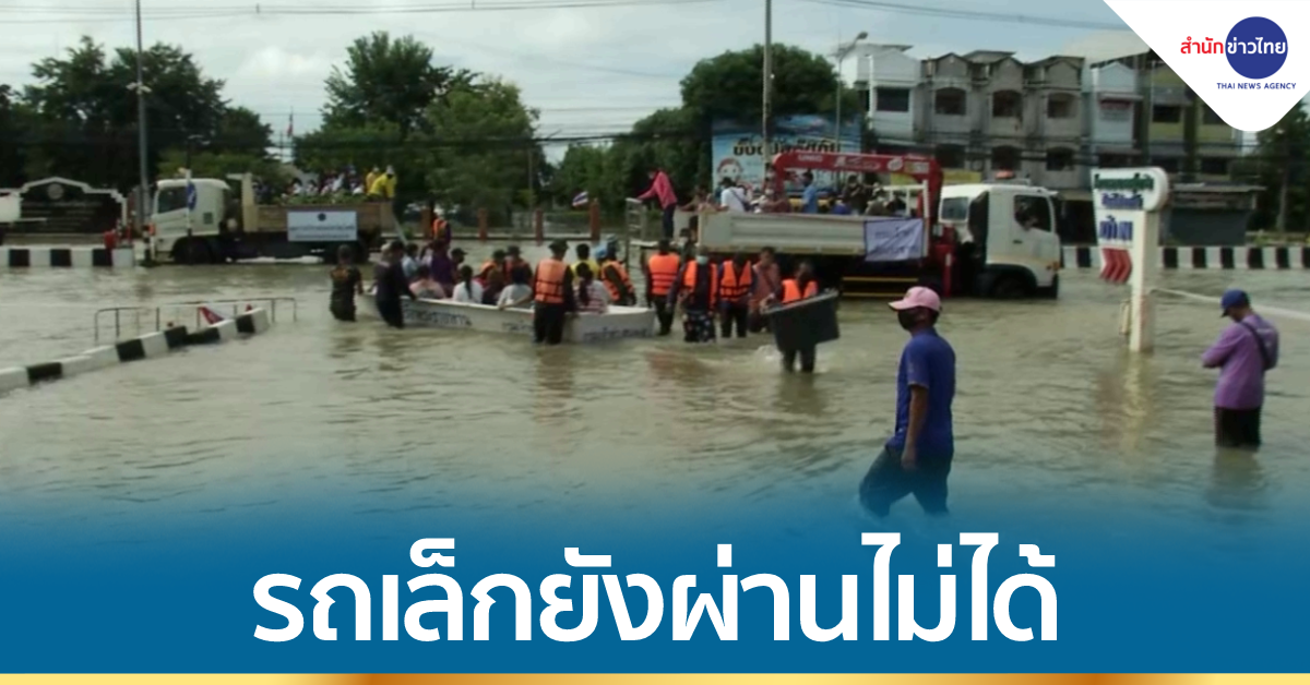 น้ำที่ท่วมตัวเมืองสุโขทัยฝั่งตะวันตก ล่าสุดเริ่มทรงตัวและลดลงอย่างช้าๆ แต่หลายจุดน้ำยังท่วมสูงถึงเมตร ชาวบ้านยังคงเดือดร้อนโดยเฉพาะผู้ป่วยที่จำเป็นต้องไปโรงพยาบาล