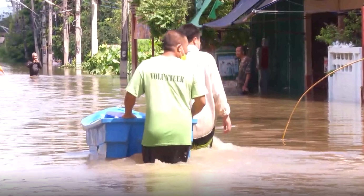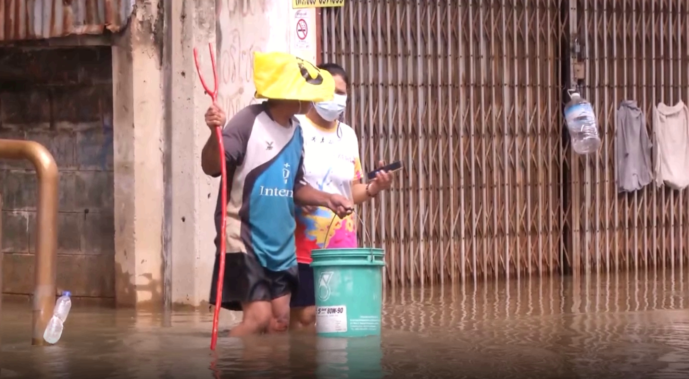 ผู้สื่อข่าวเดินเข้าไปในซอยพบบ้านอีก 2 หลัง ติดอยู่ด้านในและไม่ยอมออกมา เจ้าของบ้านพักบนชั้น 2 ของตัวบ้าน ในซอยนี้มีบ้าน 2 หลัง น้ำท่วมสูงถึงหน้าอก โดยป้าเจ้าบ้าน เผยว่าการเข้าห้องน้ำถือว่าลำบากมาก ห้องใช้ถังรอง และอาหารต้องรอผู้นำชุมชนมาส่งเช่นกัน.-สำนักข่าวไทย