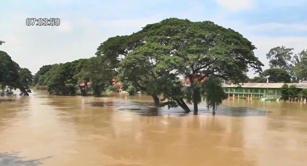 ผู้สื่อข่าวรายงานสถานการณ์น้ำท่วมที่ จ.พระนครศรีอยุธยา พบว่าหลังจากเขื่อนเจ้าพระยาเพิ่มการระบายน้ำลงสู่พื้นที่ท้ายเขื่อน ที่ 2,631 ลบ.ม.ต่อวินาที ส่งผลให้ระดับน้ำในแม่น้ำเจ้าพระยา แม่น้ำน้อย คลองต่าง ๆ ระดับน้ำเพิ่มสูงขึ้น โดยที่ประตูระบายน้ำคลองบางบาล รับน้ำจากแม่น้ำพระยา มีน้ำไหลแรง เข้าท่วมในบ้านเรือนประชาชน วัด โรงเรียน ถนนทางเข้าชุมชน ที่โรงเรียนบางบาล เจ้าหน้าที่ทหารต้องนำกำลังเข้าทำแนวป้องกันน้ำท่วมไม่ให้ไหลเข้าท่วมพื้นที่ในโรงเรียน ซึ่งระดับน้ำนอกโรงเรียนสูงประมาณ 1 เมตร น้ำไหลแรง