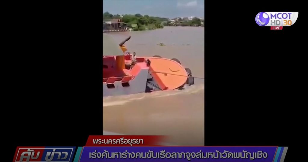 อยุธยา 29 ก.ย. – เจ้าหน้าที่ยุติค้นหาคนขับเรือและภรรยา ประสบอุบัติเหตุเรือลากจูงสินค้าพลิกคว่ำกลางแม่น้ำเจ้าพระยา ทำให้ทั้งคู่ถูกกระแสน้ำพัดจมสูญหาย โดยจะเริ่มค้นหาอีกครั้งเช้าวันพรุ่งนี้