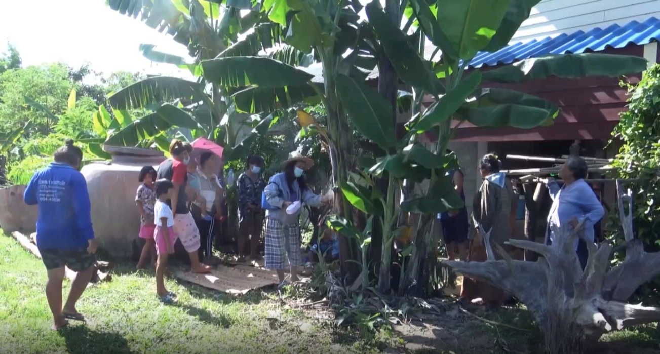 นางบุญถม ทองน้อย เจ้าของเล่าให้ทีมข่าวฟังว่าปลูกกล้วยตานีจำนวน 3 ต้นประมาณปีเศษ เจริญเติบโตสวยงาม แต่มีอยู่ 1 ต้นที่สูงกว่า 4-5 เมตร แรกๆ ออกปลี มา 2 ปลี ใน 1 เครือ ต่อมาพบว่าต้นกล้วยของตน มีปลีกล้วยออกมาเพิ่มมาอีก 1 รวมเป็น 3 ปลี เกิดมาพึ่งเคยพบเป็นครั้งแรก.-สำนักข่าวไทย