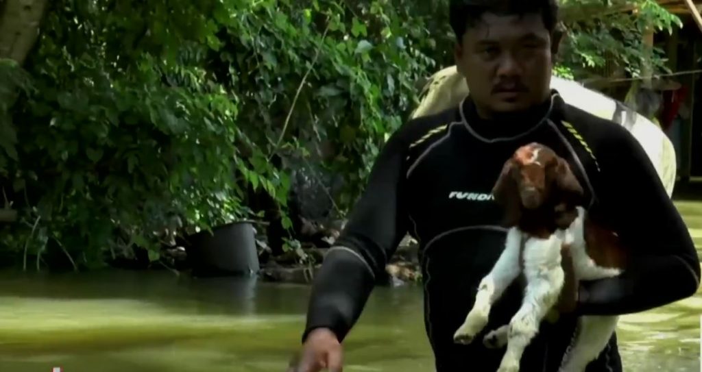เจ้าแพะตัวนี้คือหนึ่งในสัตว์เลี้ยงที่ทีมกู้ภัยฮุก31 ช่วยเหลือออกมาพร้อมกับเจ้าของบ้าน ที่บ้านหลุข้าว ต.หลุมข้าว อ.โนนสูง ที่หลายจุดระดับน้ำยังท่วมสูงมากกว่า 1เมตร