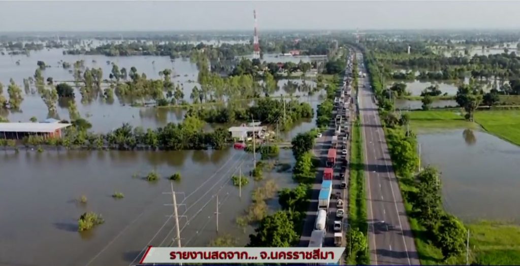 ล่าสุดมวลน้ำแผ่วงกว้างท่วมพื้นที่ ต.เทพาลัย อ.คง บางส่วนหลากท่วมถนนมิตรภาพ ช่วงระหว่าง กม.202-206 สูงประมาณ 30 เซนติเมตร รถยนต์ยังสัญจรผ่านได้