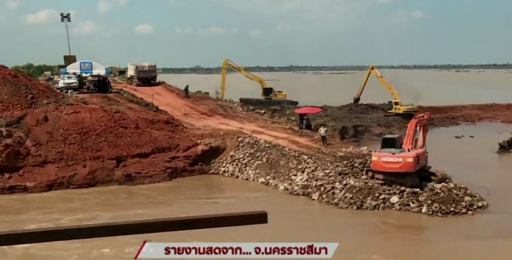 นครราชสีมา 1 ต.ค. – กรมชลฯ คาดจะซ่อมแซมอ่างเก็บน้ำลำเชียงไกรตอนล่างที่พังเสียหาย ได้ภายใน 7 วัน เพื่อเปลี่ยนทิศทางการไหลของน้ำให้ไหลผ่านทางประตูระบายน้ำ ส่วนสถานการณ์น้ำท่วมในหลายพื้นที่ยังวิกฤติ โดยเฉพาะ อ.โนนสูง ซึ่งรับน้ำจาก อ.โนนไทย หลายจุดท่วมสูงกว่า 1 เมตร