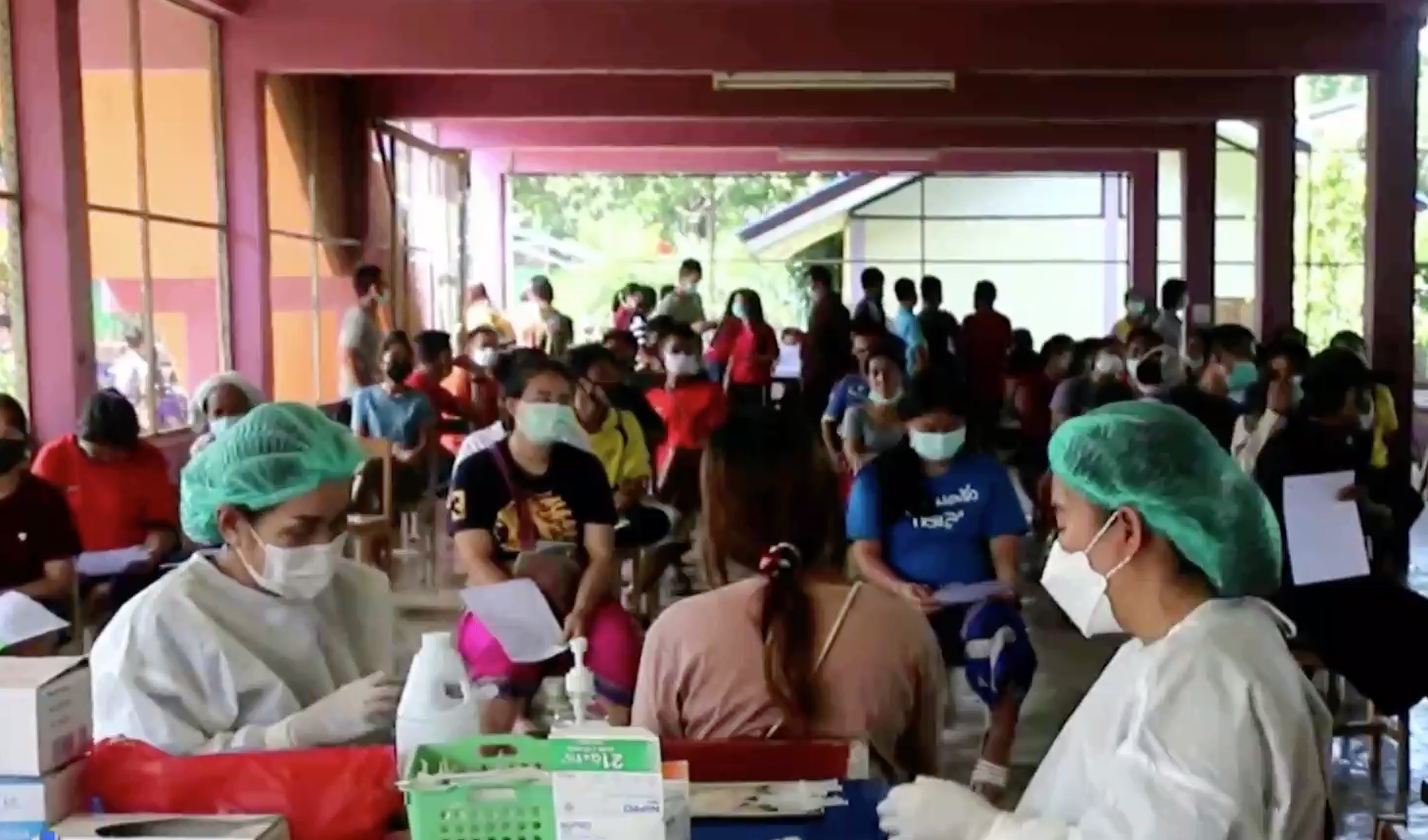 กาญจนบุรี 1 ต.ค.- โหดสุดๆ! ทีมแพทย์ พยาบาล พร้อมเจ้าหน้าที่ ลุยทางเข้าทุ่งใหญ่นเรศวร เพื่อฉีดวัคซีนเข็มที่ 1 ให้กับชาวบ้านจะแก 146 คน แต่วันนี้ฉีดเข็ม 2 เส้นทางรถไม่สามารถไปได้แล้วต้องไปด้วย ฮ.