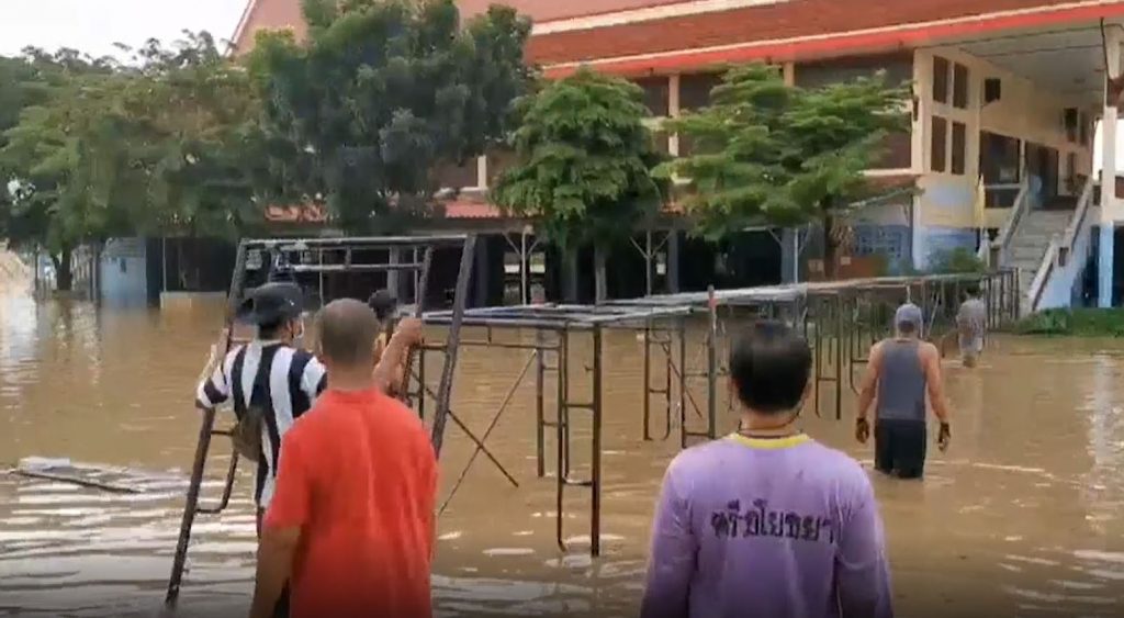 ด้านป้องกันและบรรเทาสาธารณภัยพระนครศรีอยุธยา เปิดเผยว่า วันนี้เขื่อนเจ้าพระยาระบายน้ำในอัตรา 2,779 ลูกบาศก์เมตรต่อวินาที ทำให้พื้นที่ลุ่มต่ำริมแม่น้ำและคลองธรรมชาตินอกคันกั้นน้ำชลประทาน ได้รับผลกระทบ น้ำเอ่อล้นตลิ่งจากแม่น้ำน้อย คลองโผงเผง และคลองบางบาล ท่วมบริเวณบ้านเรือนและที่อยู่อาศัย เพิ่มเป็น 8 อำเภอ 95 ตำบล.-สำนักข่าวไทย