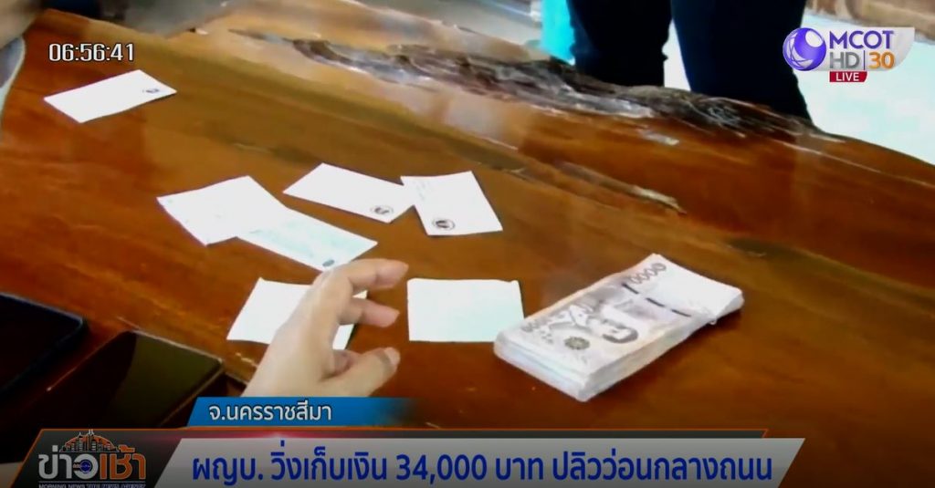 โคราช 11 ต.ค. – ผู้ใหญ่บ้านหมู่ 12 ต.วังหมี อ.วังน้ำเขียว จ.นครราชสีมา ขับรถมาบนถนนสายวังน้ำเขียว-เขาใหญ่ เห็นธนบัตรฉบับละ 1,000 บาท จำนวน 34 ใบ รวมเป็นเงิน 34,000 บาท กระจายเกลื่อนถนน จึงเก็บส่งคืนเจ้าของ