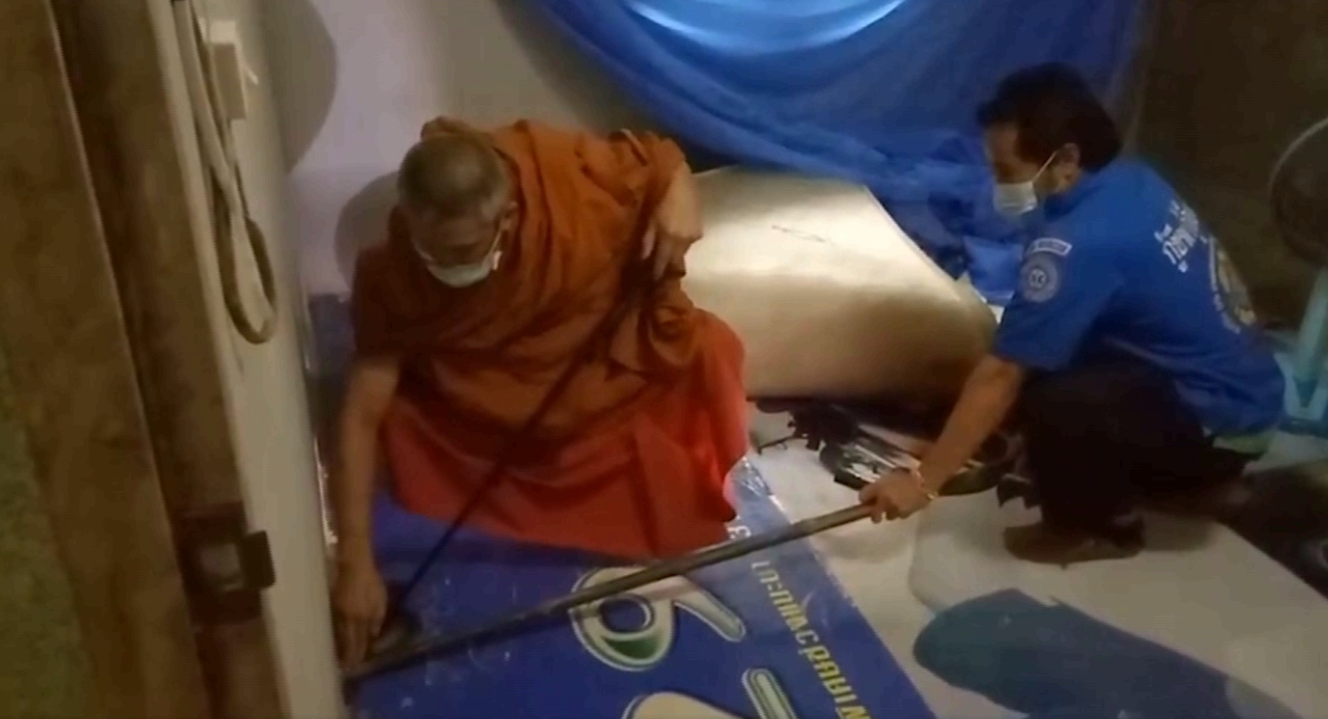 เลย 11 ต.ค.- พระรุ่งธรรม พระลูกวัดศรีอภัยวัน ตำบลนาอ้อ อำเภอเมืองเลย ร่วมทีมกู้ภัยช่วยชาวบ้านจับงูที่เข้าไปซุกในห้องนอน พบเป็นงูเห่าขนาดยาว 1 .30 ม. ใช้เวลาเพียง 10 นาที ก็สามารถจับได้สำเร็จ