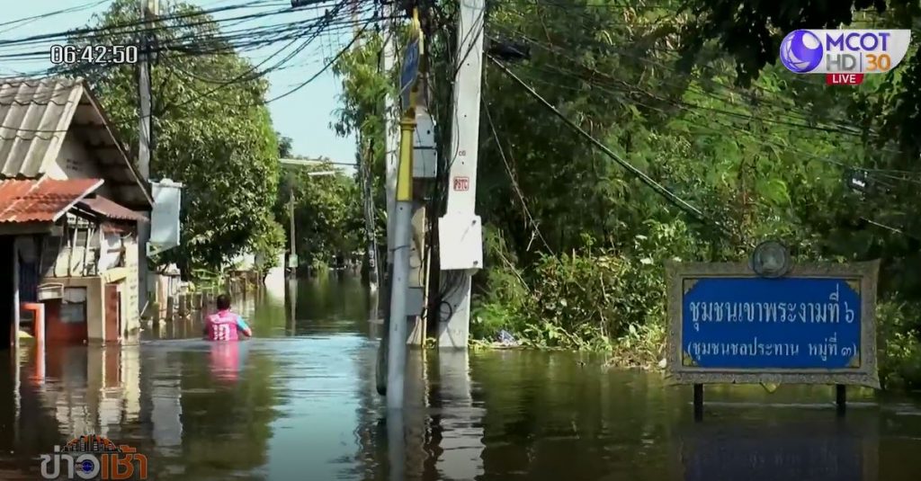 เกาะเกร็ดเจอน้ำท่วมสูงต้องใช้เรือสัญจร