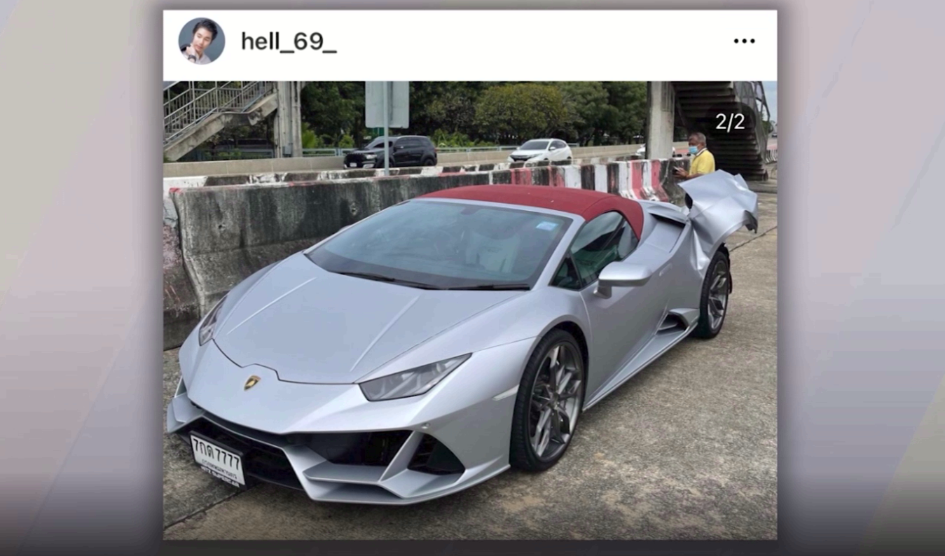โลกออนไลน์แชร์ภาพรถลัมโบร์กินี HURACAN EVO ของอินน์ กษิดิศ เกษมสันต์ ดุลยจินดา ไฮโซหนุ่มเจ้าของบ. Hitz SuperCar ซื้อ-ขายรถซูเปอร์คาร์ ถูกรถกระบะชนท้ายได้รับความเสียหาย โดนประเมินค่าซ่อม 5 ล้านบาท แต่ฝั่งคนขับกระบะไม่มีประกัน