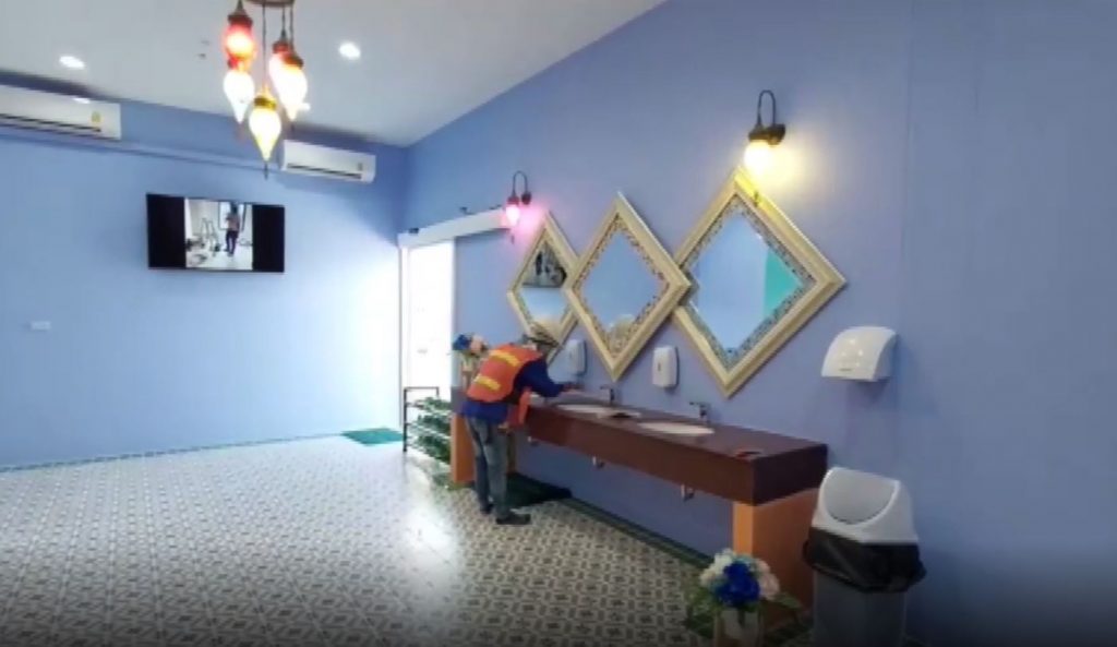 ชลบุรี 13 ต.ค.-ลูกค้าแห่เซลฟี่ปั๊มน้ำมันเปิดใหม่แต่งห้องน้ำสุด ลายสายรุ้ง ติดแอร์มีเฟอร์นิเจอร์นั่งดูทีวีรอคิว มาพร้อมมุมถ่ายรูปหลายมุม ทั้งประตูอัตโนมัติ และอ่างล้างมือทันสมัย