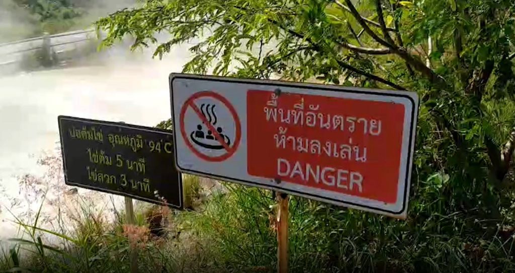 ตำรวจท่องเที่ยวจึงลงพื้นที่ตรวจสอบข้อเท็จจริง พบว่าบ่อน้ำพุร้อนที่เกิดเหตุ คือ บ่อน้ำพุร้อนเหมืองแร่ ริมถนนในตำบลเมืองแปง ที่อำเภอปาย เป็นบ่อน้ำพุร้อนของชุมชนที่อยู่ระหว่างการพัฒนา แต่ริมถนนมีราวเหล็กกั้นสูง 80 เซนติเมตร ยาวเกือบ 40 เมตร มีป้ายบอกบ่อต้มไข่ อุณหภูมิ 94 องศาเซลเซียส และป้ายเตือนพื้นที่อันตรายห้ามลงเล่นชัดเจน แต่ในฐานะเจ้าบ้านกำลังหาทางช่วยเหลือ