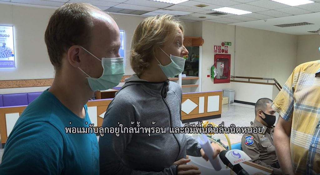 โดย อิลินา เครปโตวา แม่ของเด็กชายคนนี้ พร้อมสามี เล่าว่า ครอบครัวมาเที่ยวเมืองไทยได้ราว 1 ปี ส่วนใหญ่อยู่ที่พัทยา เดินทางมาท่องเที่ยวภาคเหนือก่อนจะกลับรัสเซียในเดือนหน้า วันที่ 4 ตุลาคม เดินทางไปเที่ยวที่อำเภอปาย แม่ฮ่องสอน ระหว่างทางเจอบ่อน้ำพุร้อนจึงแวะท่องเที่ยวถ่ายรูปและเกิดเหตุไม่คาดคิดขึ้น ลูกชายลื่นไถลตกลงไปในบ่อน้ำพุร้อน แค่ 5 วินาที ถูกลวกเกือบทั้งตัว และเธอมองว่า เหตุการณ์นี้จะไม่เกิดขึ้นหากเครื่องกั้นหรือป้ายเตือน