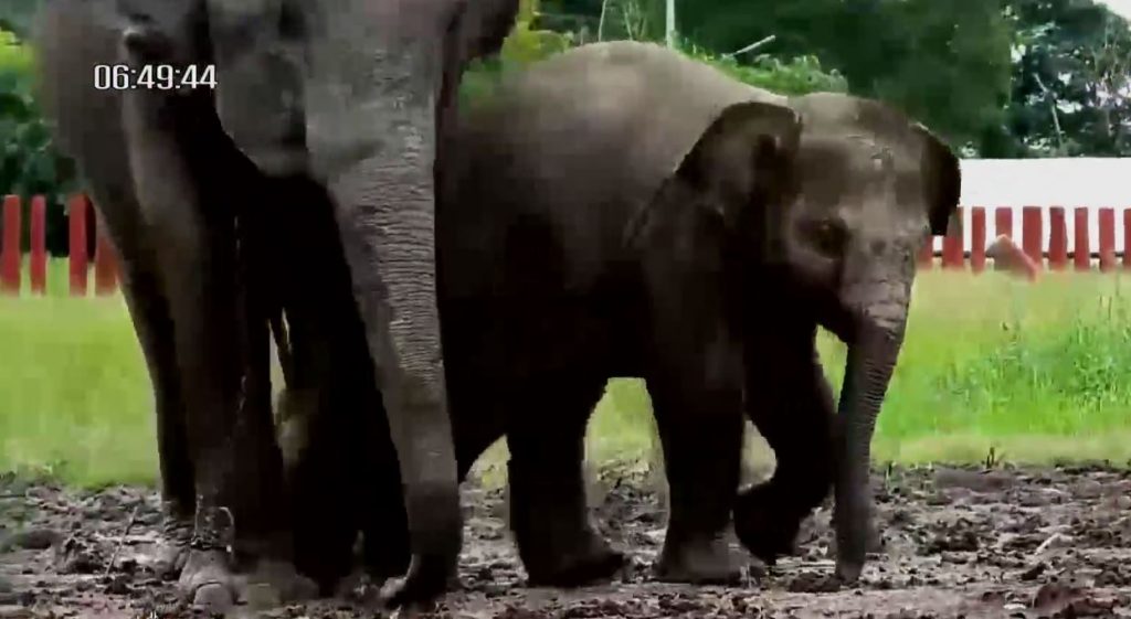 ลูกช้างวิ่งป่วนเพนียดหลังน้ำลด