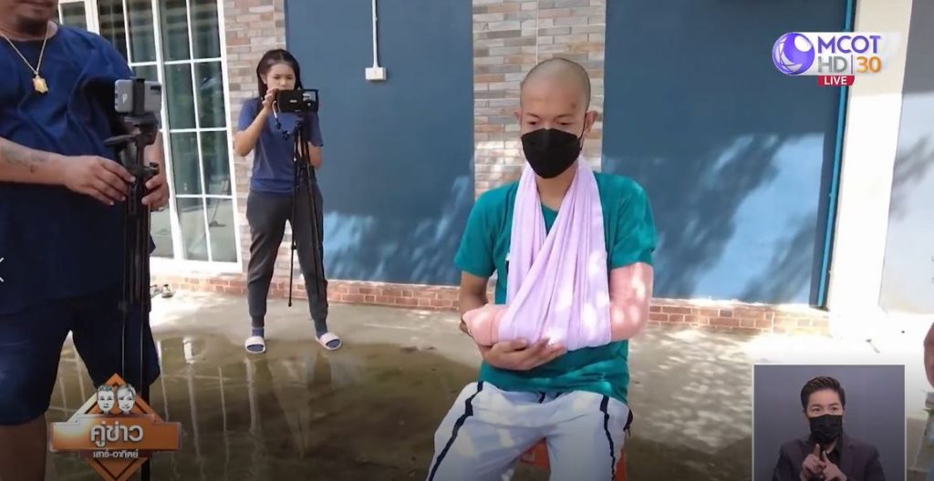 ขณะที่การตรวจบาดแผลที่โรงพยาบาลพระจอมเกล้า จ.เพชรบุรี ที่ท่อนแขน แพทย์เอกซเรย์พบบาดแผลมีอาการน่าเป็นห่วง ต้องเปิดเฝือกตรวจโดยละเอียดและผ่าตัดด่วน กระดูกเกยกัน มีโอกาสติดเชื้อได้สูง แพทย์ระบุว่าโชคดีที่มาตรวจโดยละเอียดก่อนเกิดการติดเชื้อ